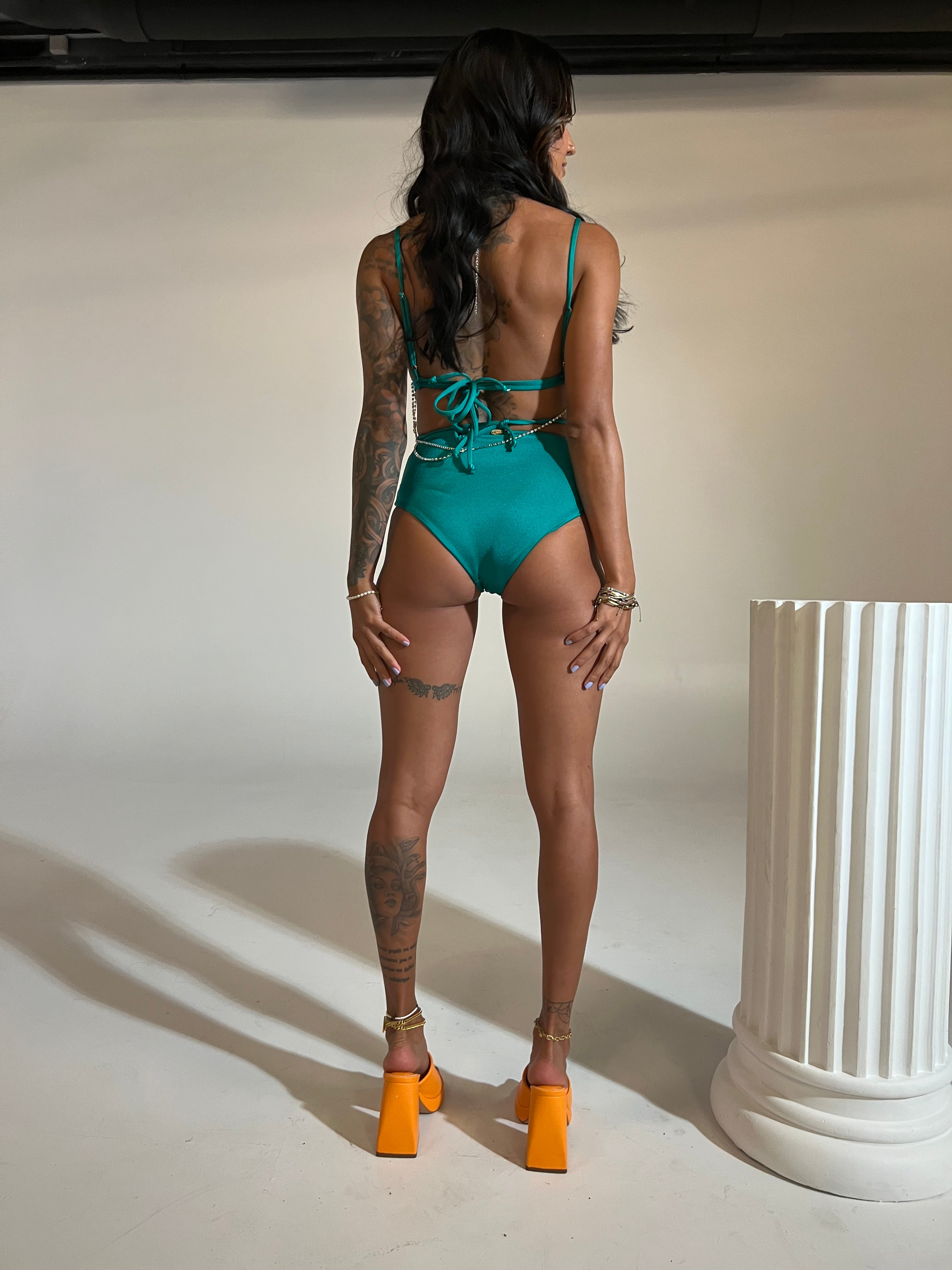 Highlights of our dark green bikini top: