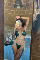 Discover our dark green bikini top today and enjoy style, comfort and quality all in one. For those who prefer something simpler, we recommend the new Reina bikini bottoms.