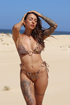 The Lea leopard bikini bottoms are the epitome of style and wildness at the same time. With their striking leopard print, they add a certain exoticism and elegance to any beach or pool outfit. The bold pattern combined with the Brazilian cut of the bottoms creates a seductive look that emphasizes the natural contours while exuding a certain sophistication.